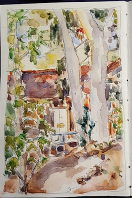in Carlsbad. I sat among the curious peafowl and sketched the Wash